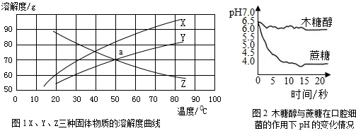 ①木糖醇甜度相当于蔗糖、易溶于水、是白色固体(30℃、50℃、60℃时,溶解度分别为:70 g、84 g、90 g),目前木糖醇口香糖正在取代蔗糖口香糖;