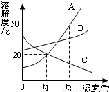 | 温度/℃ | 20 | 30 | 40 | 50 | 60 |
