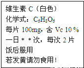 人体缺乏维生素C(简写“VC”)就会患坏血病,哥伦布探险时的许多船员就因此而死亡.如图所示为某种“维生素C”说明书的一部分.请你回答: