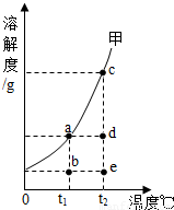 甲物质在水中的溶解度曲线如右图所示,甲物质的溶液分别处于图象中a、b、c、d、e五个点时,溶液中甲的质量分数大小关系正