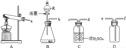 (1)R仪器的名称是______,用过氧化氢制氧气应选用的发生装置是______ (填序号,下同),分解过氧化氢制得的氧气常带有少量水蒸气,欲收集一瓶干燥的氧气,经过的导气管口正确的连接顺序是b接______.