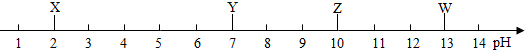 下图是X、Y、Z、W四种溶液的近似pH.下列判断不正确的是( )