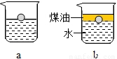 钠是一种非常活泼的金属,用小刀切一小块钠投入到盛有蒸馏水的烧杯中(图a),可以看到钠块浮在水面上,与水发生剧烈反应,反应放出的热量使钠熔化成银白色的小球,甚至使生成的气体发生燃烧.如果在盛蒸馏水的烧杯中先注入一些煤油,再投入金属钠,可以看到金属钠悬浮在煤油和水的界面上(如图b),同样与水发生剧烈反应,生成氢氧化钠和另一种单质气体,但不发生燃烧.试根据以上叙述,解答下列问题: