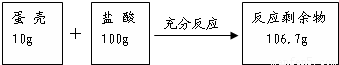 请你根据题中信息计算蛋壳中碳酸钙的质量?