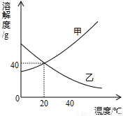 (4)40℃时,将甲、乙两物质的饱和溶液分别降温到20℃,所得溶液的溶质质量分数的大小关系是