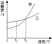 2℃甲、乙两物质的饱和溶液温度降低到t
