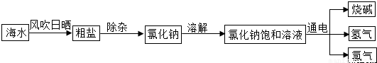 我国拥有丰富的海洋资源,我们可以从海水中提取食盐,并以此为原料制得具有广泛用 途的烧碱,其制取的主要工艺流程如下:
