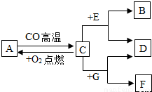 现有A、B、C、D、E、F、G七种物质,C、F是最常见的金属,B是气体单质,D为浅绿色溶液,G为蓝色溶液,它们之间存在如下关系: