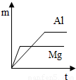 室温下,等质量的镁片和铝片分别与足量的稀硫酸反应,产生氢气的质量(m)与时间(t)的关系图正确的是( )