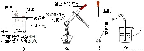 | ①化合反应4P+5O2 ②分解反应H2CO3=H2O+CO2↑ ③置换反应C+2CuO ④复分解反应HCl+NaOH=NaCl+H2O | ①除去餐具油污--用洗洁精乳化 ②人体缺乏维生素A--引起夜盲症 ③干冰--用于人工降雨 ④鉴别羊毛和合成纤维--点燃后闻气味 |