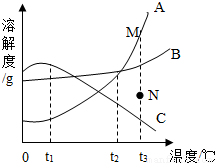1℃时,三种物质的溶解度大小顺序为A<B<C