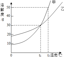 2℃时,分别在100g水中各溶解20g甲、乙,同时降低温度,甲先达到饱和
