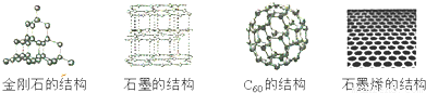 60和石墨烯的结构示意图如下所示,下列关于这四种物质的说法中正确的是( )