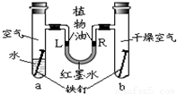 如图是探究铁锈蚀条件的装置.调节L端与R端的液面高度一致,塞紧木塞,一周后观察.下列推断错误的是( )