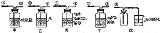 2,最好选用下列图中适当的装置进行净化,其仪器的连接顺序为:气体发生装置接______接______接______接______接⑨(填数字序号).