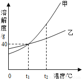 1℃时,甲、乙两物质的溶解度相等,均为40g