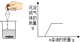 向烧杯中逐滴加入x溶液至过量,反应过程中生成沉淀或气体的质量与加入x溶液的质量关系能用如图所示的曲线表示的是( )