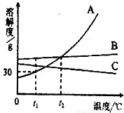 2℃时A、B、C三种物质的饱和溶液降温至t