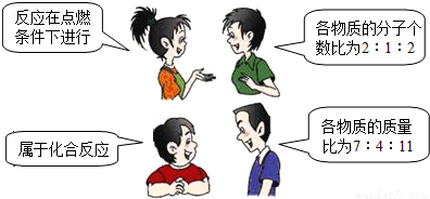 图中四位同学正在讨论某一化学方程式表示的意义,他们所描述的化学方程式是( )