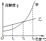 3℃的甲乙两物质的饱和溶液降温到t