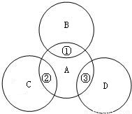 A、B、C、D分别是铁、盐酸、碳酸钠溶液、氢氧化钠溶液中的一种,其反应关系如图所示,图中两圆相交部分,①、②、③表示两种物质之间反应的主要现象,其中①无明显现象.请思考下列问题: