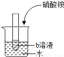 如图是a、b两种物质的溶解度曲线.室温时,将盛有a、b饱和溶液的试管分别放入烧杯内的水中,均无晶体析出.当向烧杯内的水中加入硝酸铵固体或浓硫酸后,下图试管内所示现象正确的是( )