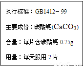 缺钙能导致儿童发育不良或佝偻病.小明从食物中摄入钙元素不足,每天还需要服用2片某种钙片.该钙片标签的部分内容如图(钙片中只有碳酸钙含有钙元素),小明每天从钙片中摄入钙元素的质量为( )