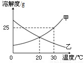 A.30℃时,50g水可以溶解25g甲物质