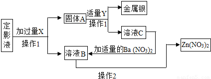 3)并对定影液进行处理,回收金属银和硝酸锌固体.设计步骤如下: