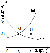 1℃时,甲、乙两物质的溶解度相等