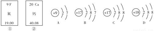 元素周期表是我们学习化学的重要工具.下图中的①、②是氟元素、钙元素在元素周期表中的信息,A、B、C、D是某四种粒子的结构示意图.