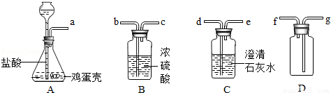 (1)小明要证明鸡蛋壳的主要成分是碳酸盐,他将A装置中的导气管a与C装置中的导气管 相连,当装置C中产生 的现象时即达到实验目的.