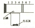 某同学用图所示装置粗略测定空气中氧气的体积分数,烧杯上方玻璃管中部有一可左右移动的活塞,活塞左端密封有空气,活塞右端玻璃管口与空气相通,开始时活塞在刻度5处,向烧杯内加水与生石灰反应放热使白磷燃烧,实验结束后活塞停留在( )