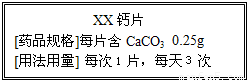 钙是人体必须的常量元素,每日必须摄入足够量的钙.目前市场上的补钙药剂很多,右图是某种品牌的补钙药品的部分说明书.请回答下列问题: