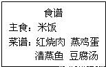中考前,小明的妈妈为了给他补充营养,准备的午餐食谱如图所示,