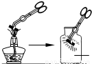 丝或含碳铁丝)末端,将它固定,用镊子夹住“铁丝”,然后将火柴在酒精灯上点燃,将“铁丝”由集气瓶口向下慢慢伸人,观察现象: