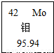 在元素周期表中的钼元素的某些信息如图所示.下列有关钼的说法正确的是( )