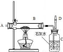 实验室用右图装置还原CuO,从A处通入CO,B处是CuO,C处是澄清石灰水,根据实验现象,回答下列问题: