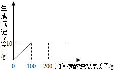 取14克固体样品,全部溶于100克水中,向所得的混合溶液中滴加溶质质量分数为10.6%0的碳酸钠溶液,记录并绘制了如图所示的曲线.