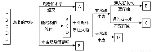有A、B、C、D、E五种气体,它们分别是氧气、氢气、一氧化碳、二氧化碳、甲烷中的一种,对其进行如图所示的实验: