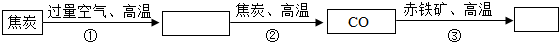炼铁厂常以焦炭、赤铁矿、空气等为主要原料炼铁,反应过程如下: