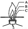 三层,取一根火柴梗,拿住一端迅速平放入火焰中,约1~2s后取出,处在火焰