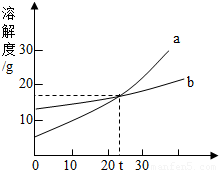 C.在t℃时,a、b的饱和溶液中溶质质量分数相等