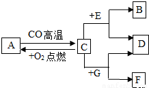 现有A、B、C、D、E、F、G七种物质,A是黑色固体,B是气体单质,C是最常见的金属,D为浅绿色溶液,F为红色光亮固体,G为蓝色溶液,它们之间存在关系如图: