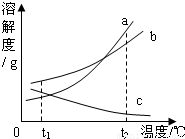A,b,c三种物质的溶解度曲线如图.现有t