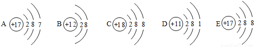 (填序号)表示某稀有气体元素的原子结构示意图.