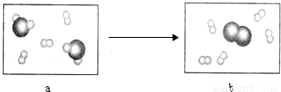 图是某化学反应的微观模拟图,期中●与○分别表示两种不同的原子,a、b分别表示反应前和反应后的物质,请回答: