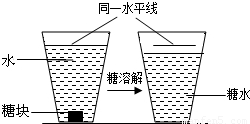 小明在家做蔗糖溶于水的实验时,观察到如图现象.请填空: