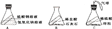 他们的做法是:将反应前的装置放在各自的托盘天平左盘上称量,然后取下使反应物之间接触反应,反应结束后再放回托盘天平上,观察天平平衡情况,这三位同学的实验中天平仍然平衡的是______,天平不能平衡的是______,不平衡的原因是______;写出A反应的化学方程式______;