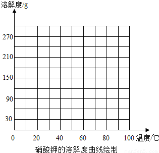 你能将硝酸钾的溶解度随温度变化的关系在下边这张图上表示出来吗?